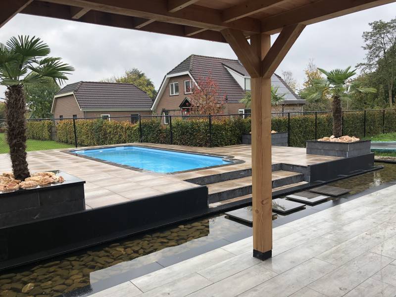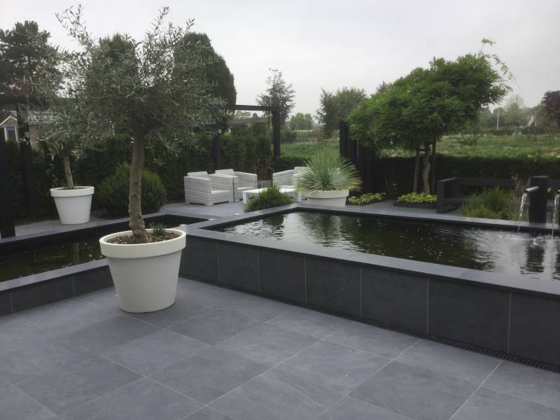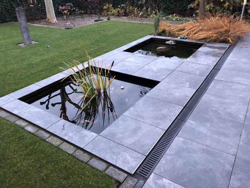Vijver in elst bekleed met keramische tegels